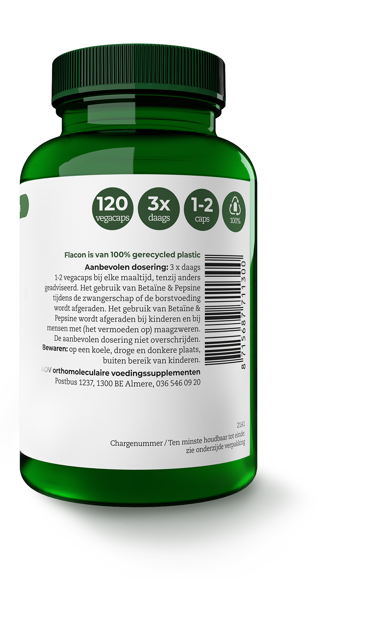 3 x daags 1-2 vegacaps bij elke maaltijd, tenzij anders geadviseerd. Het gebruik van Betaine & Pepsine tijdens de zwangerschap of de borstvoeding wort afgeraden.