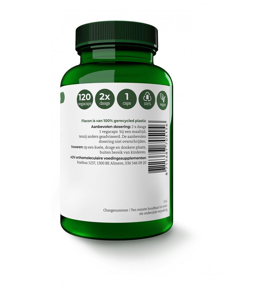 De magnesium supplementen met glycinaat van AOV bevatten per vegacaps een organisch, aminozuurgebonden vorm van magnesium. AOV 515 Magnesium bisglycinaat levert 120 mg magnesium per vegacaps. Magnesium ondersteunt het energieniveau, de spieren en botten.