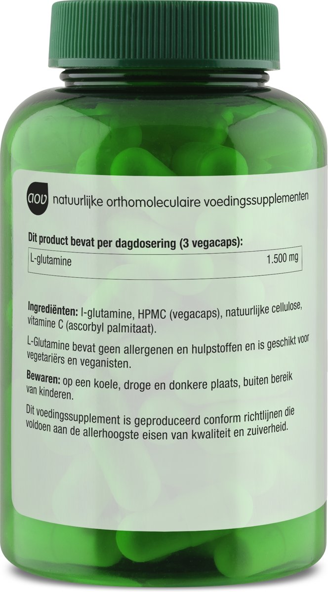 AOV 605 L-Glutamine bevat 1500 mg per dagdosering (3 vegacaps).
