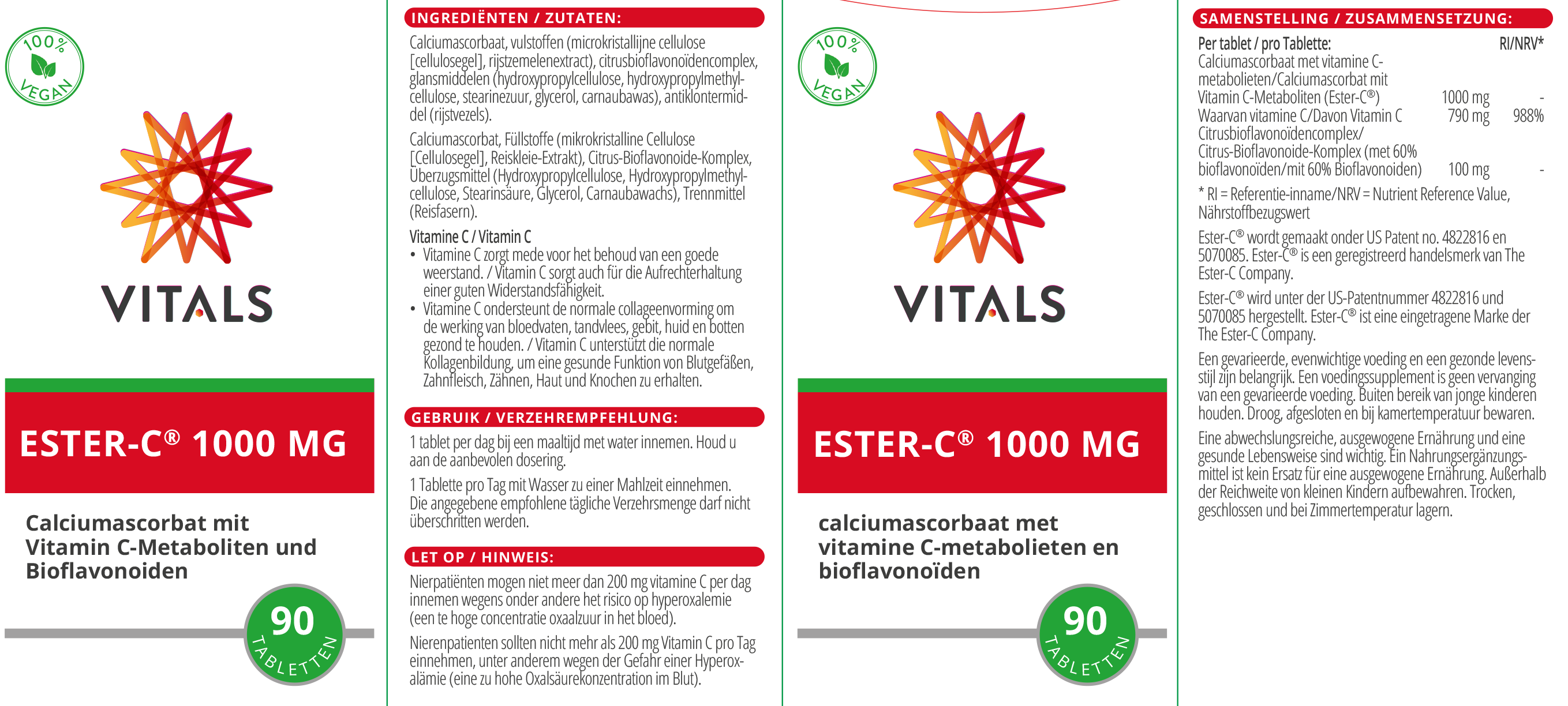 1000 mg Ester-C complex (calciumascorbaat en calcium gebonden metabolieten)