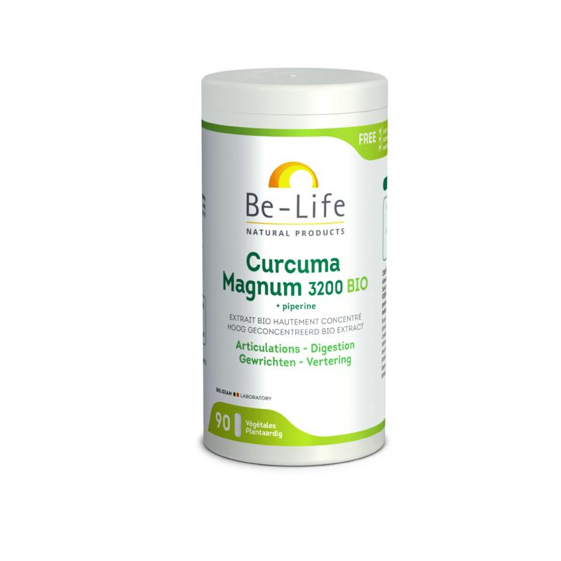 Be-Life Curcuma magnum 3200: Kan uw spijsvertering een beetje hulp gebruiken? Zijn uw gewrichten te stroef? Dan kan een eeuwenoude Aziatisch middel u helpen: nl. kurkuma of geelwortel, een plant waarvan de gedroogde wortel wordt verpulverd en gebruikt wordt om de spijsvertering te stimuleren en de gewrichten te versoepelen. Bovendien associeert Be-Life Curcuma, volgens de Ayurvedische traditie, met Piperine, wat de opname en doeltreffendheid vergroot.