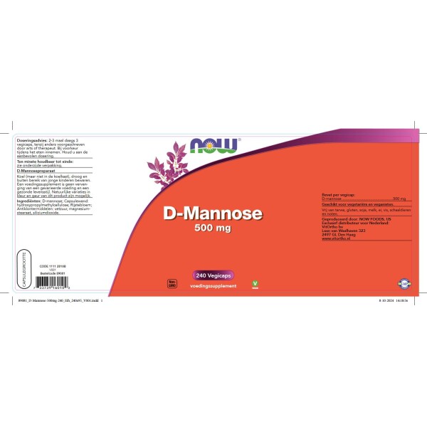 D-mannose is een natuurlijk suiker die uw lichaam gebruikt om de urinewegen te reinigen en een gezonde blaaswand te behouden. Het wordt slechts in kleine hoeveelheden gemetaboliseerd en overtollige hoeveelheden worden snel via de urine uitgescheiden