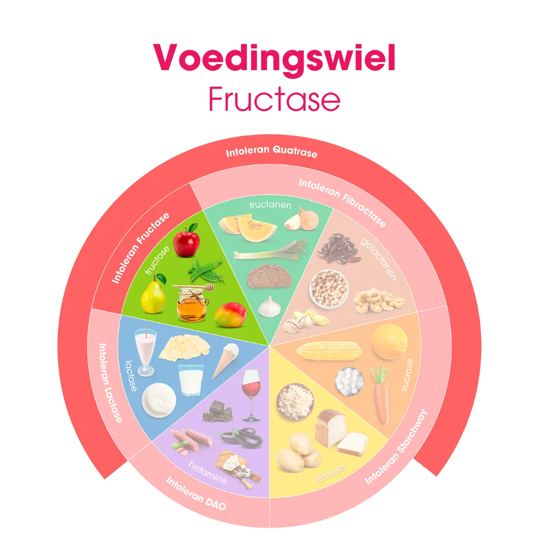 Fructose, ook wel “fruitsuiker” genoemd, behoort tot de FODMAP’s; fermenteerbare koolhydraten. Fructose komt voor in fruit, groenten, honing en bewerkte producten zoals in kersen, meloen, appel, peer, gedroogd fruit, asperges, artisjokken, vruchtensappen, appelstroop, jam, sauzen, frisdrank, ontbijtgranen en snoep.