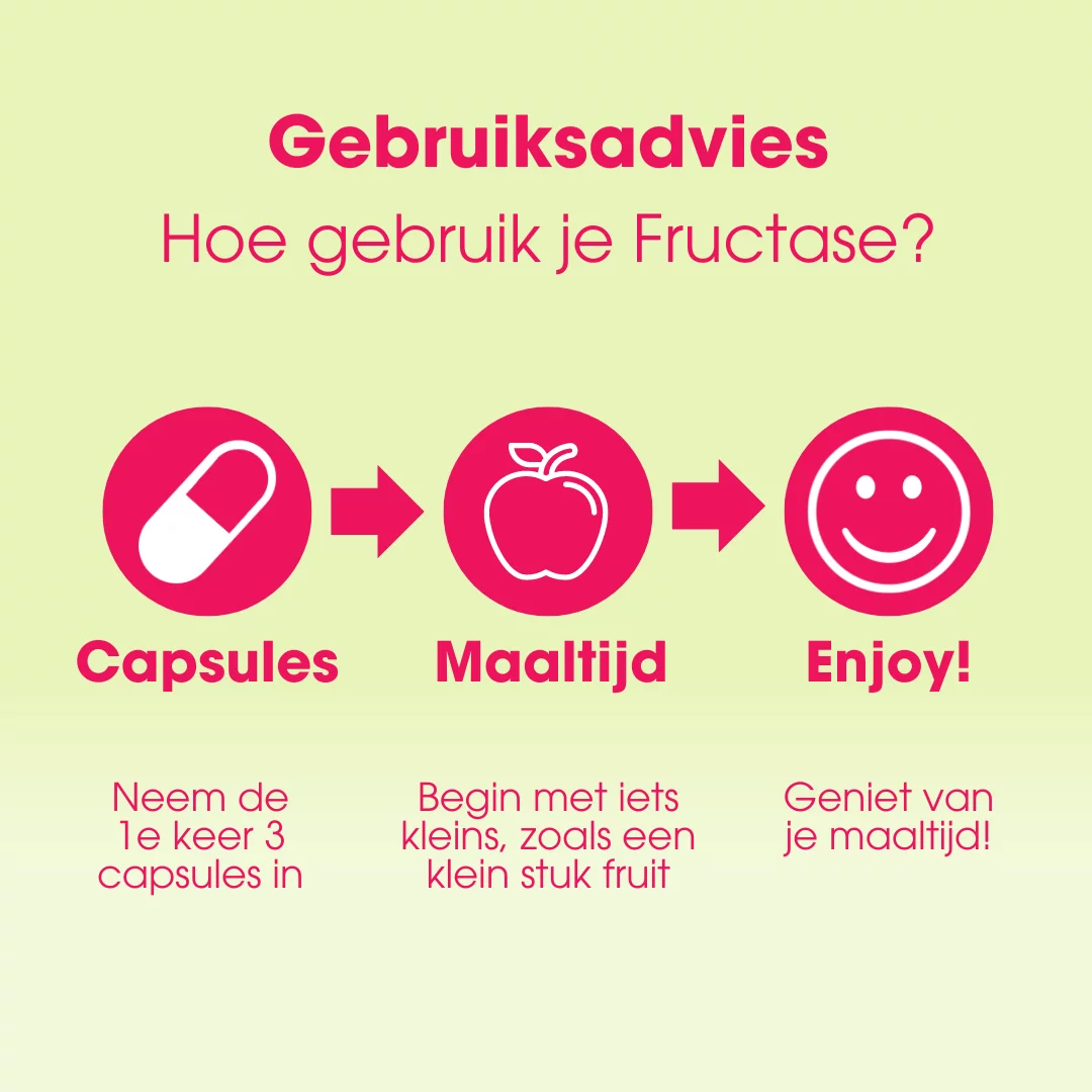 Fructase bevat capsules met het spijsverteringsenzym Xylose Isomerase, wat helpt bij de vertering van fructose uit voeding. Onze producten worden met veel zorg en aandacht ontwikkeld door onze eigen diëtisten. Voor de samenstelling van onze producten gebruiken wij enkel noodzakelijke ingrediënten, wat resulteert in pure producten van hoge kwaliteit, vrij van gluten en soja. Fructase is Low FODMAP Certified™ door de Monash University.