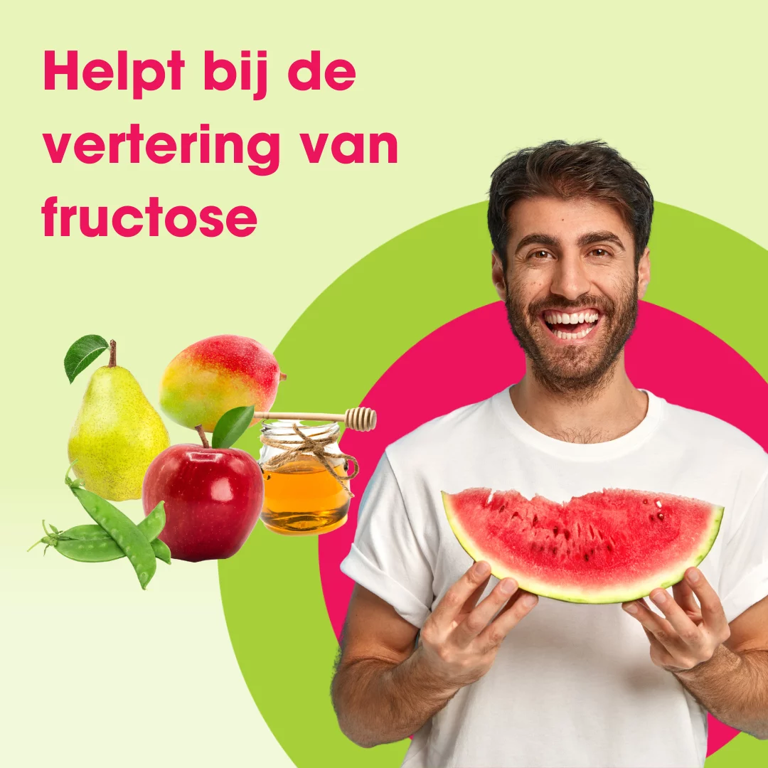 Fructase bevat het spijsverteringsenzym Xylose Isomerase, wat helpt bij de vertering van de FODMAP fructose (fruitsuiker).Fructose komt voor in fruit, groente, honing en bewerkte producten zoals in kersen, meloen, appel, peer, gedroogd fruit, vruchtensappen, honing, jam, sauzen, frisdrank, ontbijtgranen en snoep.