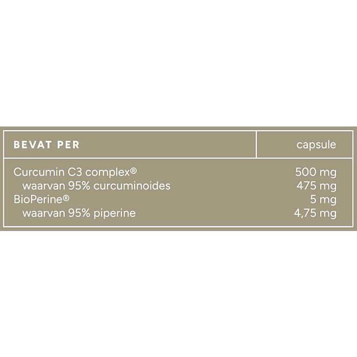 | Curcumine C3-complex® (Curcuma longa) | 500 mg |