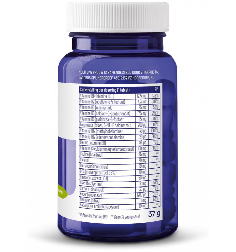 Ingredienten Vitakruid Multi dag & nacht vrouw sport