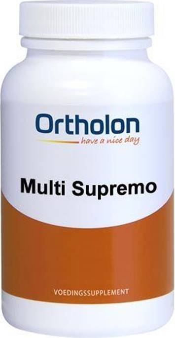 Superieure multi met fytonutriënten. Multi Supremo is de top uit de multi-vitamineralenreeks van Ortholon en bevat alle gangbare vitamines en mineralen. Daarnaast is het rijk aan carotenoïden, flavonoïden, chlorofyl, fyto-sterolen, enzymen en vezels.