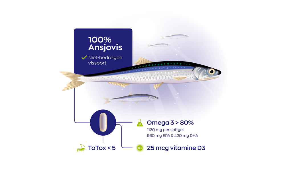 Hoge EPA en DHA concentratie van >80%
